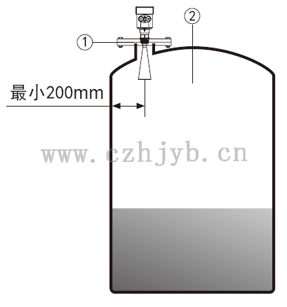 注:距離罐壁最小距離應為200mm。